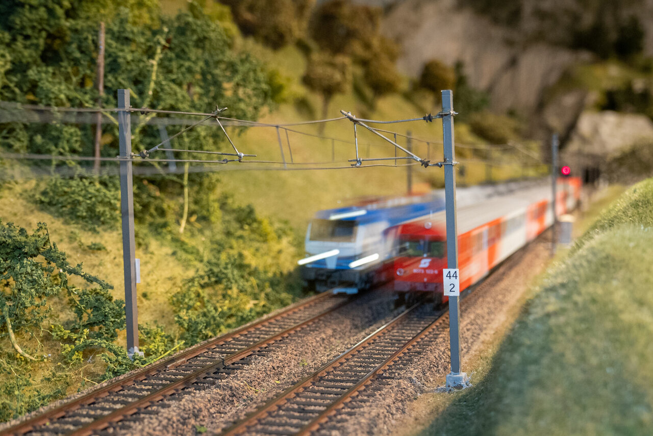 Auf 42 m² zeigt die Modellbahnanlage in Spur H0 den Nachbau der Bahnhofsanlagen und der Zugförderung mit Drehscheibe von Hieflau im steirischen Ennstal und den Bahnhof Maria Rain bei Klagenfurt nach Originalplänen im Zeitraum zwischen 1956 bis 1970. Ferner werden auf der Panoramastrecke Zugkompositionen zwischen 1960 und der Moderne gezeigt. Die voll digitalisierte Anlage erstreckt sich über 2 Räume, hat eine Gleislänge von ca. 280 m mit 80 Weichen, 55 Signalen und wird mit dem Rautenhaus Digital System und der Freiwald Traincontroller Gold 8.0 Software über einen PC gesteuert.