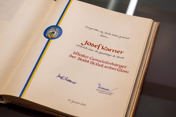 Es ist ein Meilenstein, den nur wenige erreichen: Josef Karner feierte heute seinen 104. Geburtstag. Damit ist er aktuell der älteste Bürger der Stadt St. Veit und erhielt einen Eintrag ins Goldene Buch.