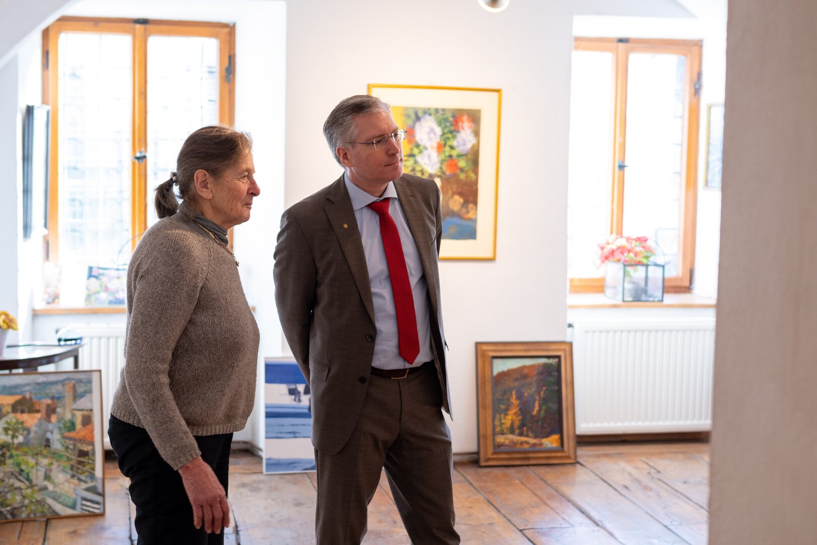 Bürgermeister Martin Kulmer besuchte kürzlich das Atelier 43, um sich mit Frau Geiger über die aktuellen Entwicklungen und Herausforderungen der Kunstgalerien auszutauschen. „Das Atelier 43 ist nicht nur ein Ort der Begegnung für Künstler:innen und Kunstliebhaber:innen, sondern trägt auch zur kulturellen Vielfalt und zum Lebensgefühl in St. Veit an der Glan bei“, ist Kulmer überzeugt. „Es ist ein Ort, an dem kreative Ideen und innovative Kunstformen gefördert werden.“ Lieselore Geiger hat mit viel Engagement und Leidenschaft dafür gesorgt, dass sich das Atelier zu einer bedeutenden Adresse für zeitgenössische Kunst entwickelt hat.