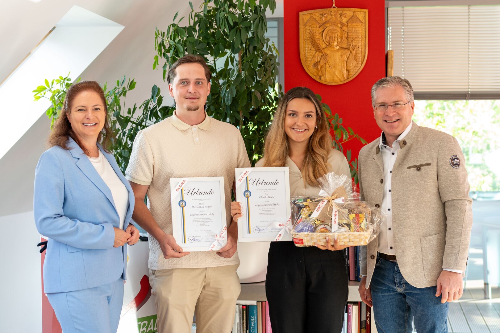 Auf dem Foto: Stadtamtsleiterin Dr. Birgit Kuhn-Veratschnig, Maximilian Kogler, Claudia Koch und Bürgermeister Martin Kulmer.